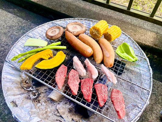 綺麗な景色を望みながら外で食べるバーベキューは旨いのなんの😋ちょい趣味の燻製も楽しみました👍